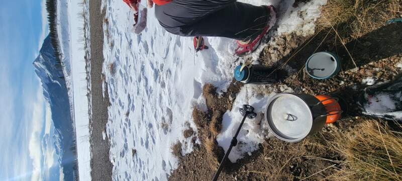 Making tea at lunch, near Old Dillon Reservoir, Silverthorne, Colorado