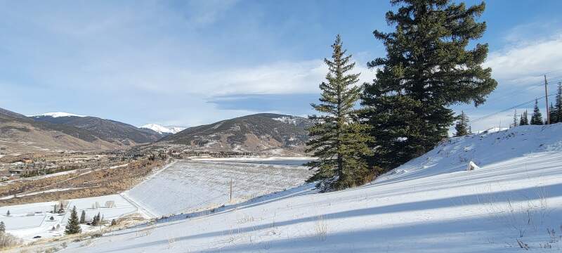 Dillon Dam, as seen from Orahood 9039 (a woods road), near Old Dillon Reservoir, Silverthorne, Colorado