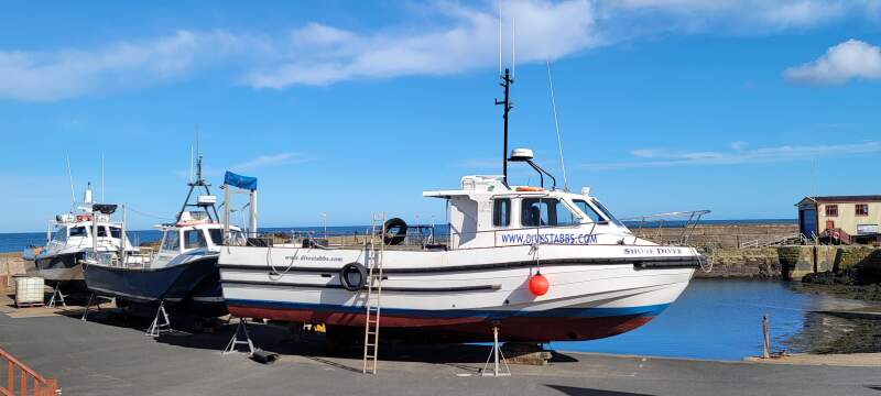 Boats pulled up on shore, St Abbs, Scotland