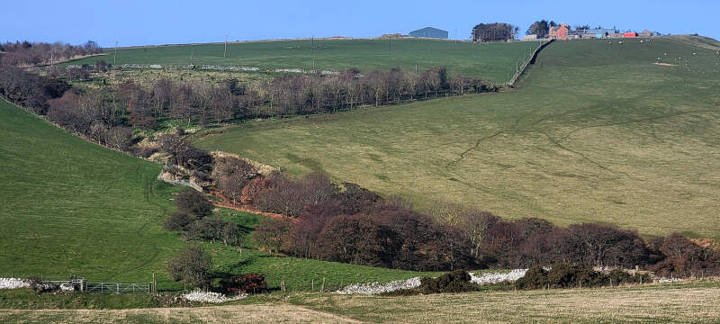 Farm on a ridgeline, as seen from the Coastal Path