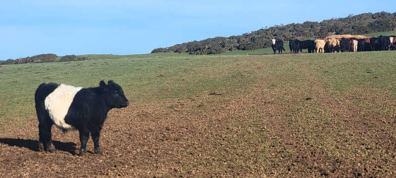 Belted Galloway cow, field by the Coastal Path