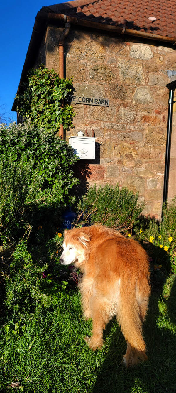 Estel-the-dog, outside The Corn Barn