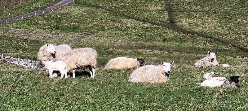 Ewes with lambs, along the Coastal Path