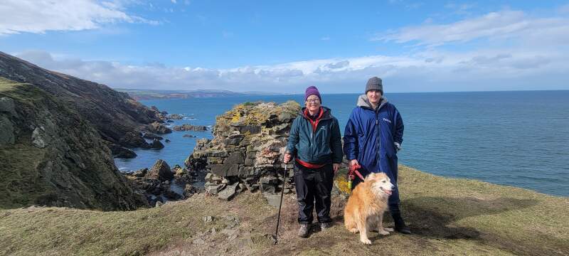 Dallas Abbott (left), Hannah Menke and Estel-the-Dog at Fast Castle