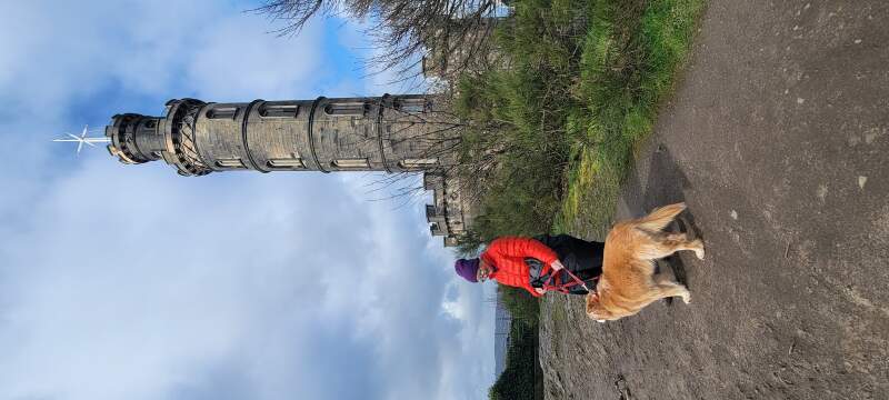 Dallas Abbott and Estel-the-Dog, by Nelson Monument, Calton Hill Park, Edinburgh, Scotland