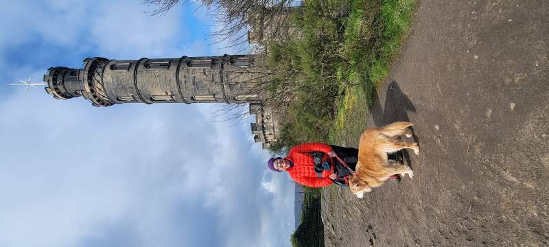 Dallas Abbott and Estel-the-Dog, by Nelson Monument, Calton Hill Park, Edinburgh, Scotland