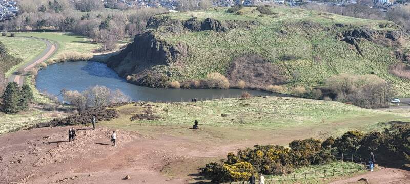 Dunsapie Loch (lake) as seen from the trail to Arthur's Seat, Hollyrood Park, Edinburgh, Scotland