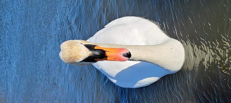 Swan on Dunsapie Loch (lake), Hollyrood Park, Edinburgh, Scotland