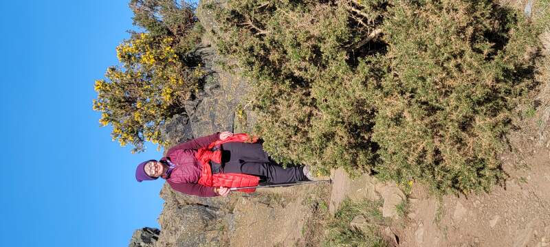 Dallas Abbott, by blooming Gorse Bushes, Salisbury Crags, Hollyrood Park, Edinburgh, Scotland