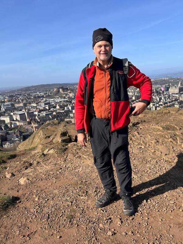 Me (Bill Menke), atop Salisbury Crags, Hollyrood Park, Edinburgh, Scotland