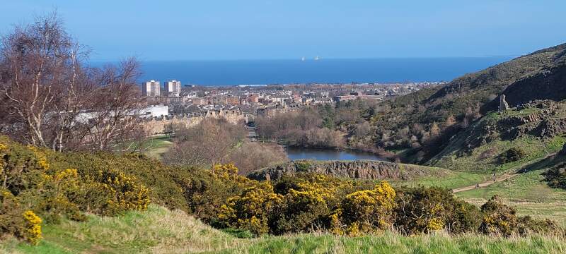 St. Margaret's Lock (lake), as seen from the east flank of Salisbury Crags, Hollyrood Park, Edinburgh, Scotland