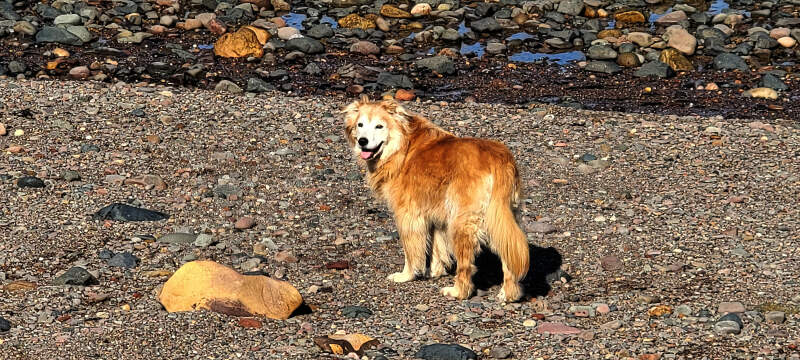 Estel-the-Dog at Dunglass Beach, near Cockburnspath, Scotland