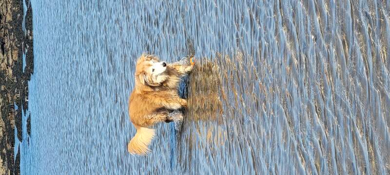 Estel-the-Dog at Dunglass Beach, near Cockburnspath, Scotland