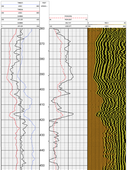 ![]() (3) Example of portion of the sonic log from CWS. The the entire well will be logged after the Permian strata are reached. |