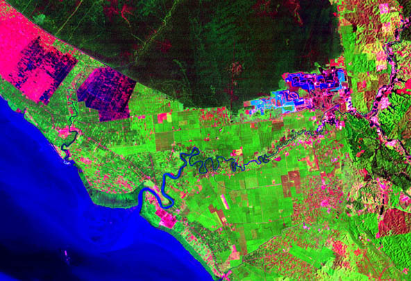 Kelang River mouth and the Straits of Malacca; Landsat 5